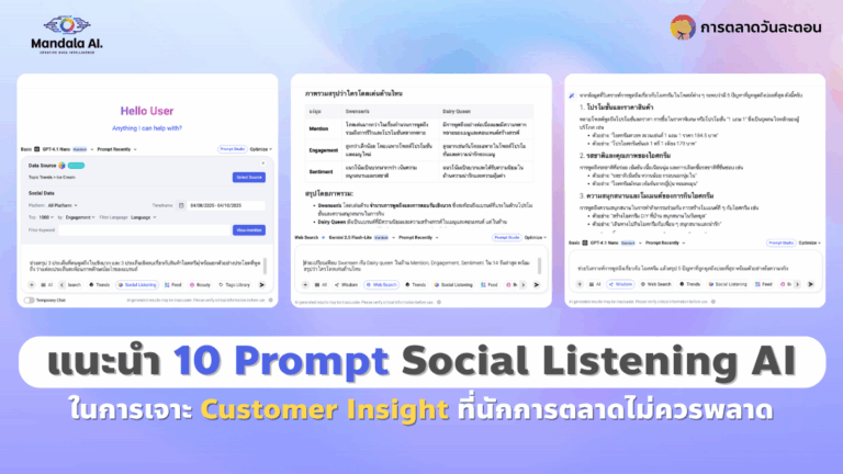 บทความนี้ผมอยากจะมาแนะนำ 10 Prompt Social Listening AI ที่ใช้ในการเจาะ Customer Insight ที่นักการตลาดไม่ควรพลาดครับ ต้องบอกว่า Social Listening สมัยนี้ใช้ง่ายขึ้นกว่าแต่ก่อนมากครับ เพราะปัจจุบันการที่มี AI เข้ามาช่วยทำให้เราไม่ต้องเสียเวลานั่งเช็คทีละโพสต์ แต่สามารถถามเป็นภาษาคนแล้วได้คำตอบที่เป็น Insight กลับมาแทบจะทันที ที่สำคัญคือ AI ยังช่วยตีความความรู้สึก ความต้องการ และพฤติกรรม จนกลายเป็นแนวทางการตลาดที่ใช้ได้จริงครับ แม้อินไซต์เหล่านี้อาจจะไม่ได้สมบูรณ์ 100% แต่ก็สามารถทำหน้าที่เป็น ไกด์หรือจุดประกายไอเดีย ให้นำไปต่อยอดวางกลยุทธ์ได้ในระดับหนึ่งเลยครับ มาดูกันดีกว่าครับว่า 10 Prompt ที่ผมอยากจะแนะนำมีอะไรบ้าง AI Studio by Mandala AI วันนี้ Social Listening ที่เราจะใช้คือ ฟีเจอร์ AI Studio จาก Mandala AI ครับ ซึ่งเป็นเครื่องมือที่ออกแบบมาให้เราสามารถถามคำถามกับข้อมูลโซเชียลได้เหมือนคุยกับผู้ช่วยส่วนตัว ไม่ว่าจะอยากรู้ Pain Point […]