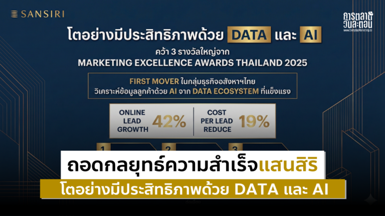 ในวันที่ตลาดอสังหาฯ ไทยเผชิญความผันผวนแบบวันต่อวัน ทั้ง Demand ที่หายเร็ว การแข่งกันที่รุนแรง และต้นทุนการตลาดที่สูงขึ้นทุกปี ทำให้มีไม่กี่แบรนด์ที่เติบโตได้อย่างมั่นคงครับ และแน่นอนหนึ่งในนั้นคือ แสนสิริ ผู้ซึ่งวางหมากการใช้ Data และ AI เป็นแกนกลางของการขับเคลื่อนธุรกิจมาตั้งแต่ปี 2023 ก่อนกระแส AI จะระเบิดเต็มรูปแบบอีกครับ แสนสิริใช้ AI เป็นระบบที่ช่วยให้เข้าใจลูกค้าแม่นยำขึ้น ตัดสิ่งที่ไม่จำเป็นทิ้ง และเพิ่มประสิทธิภาพทุกบาทของงบการตลาด จนสามารถคว้า 3 รางวัลจากเวที Marketing Excellence Awards Thailand 2025 เดี๋ยวบทความนี้เราจะพาไป ถอด กลยุทธ์ แสนสิริ กันครับ อสังหาฯ เป็นหนึ่งในอุตสาหกรรมที่คิดต้นทุนผิดชีวิตเปลี่ยนมากที่สุดครับ เพราะลูกค้าไม่ได้ซื้อบ่อย ๆ และกระบวนการตัดสินใจค่อนข้างยาวเป็นเดือน ทีมขายจึงต้องใช้เวลาอย่างคุ้มค่ากับ Lead ที่ใกล้พร้อมซื้อจริงเท่านั้น แต่โลกความจริงกลับตรงข้าม Lead จำนวนมากไม่มีคุณภาพ มาจากกลุ่มที่ไม่ได้สนใจจริง ทำให้ต้นทุนต่อการขายสูงขึ้นทุกปีครับ และเมื่อ Demand ผันผวนจากเศรษฐกิจ คนซื้อชะลอ คู่แข่งกลับเพิ่มขึ้น […]