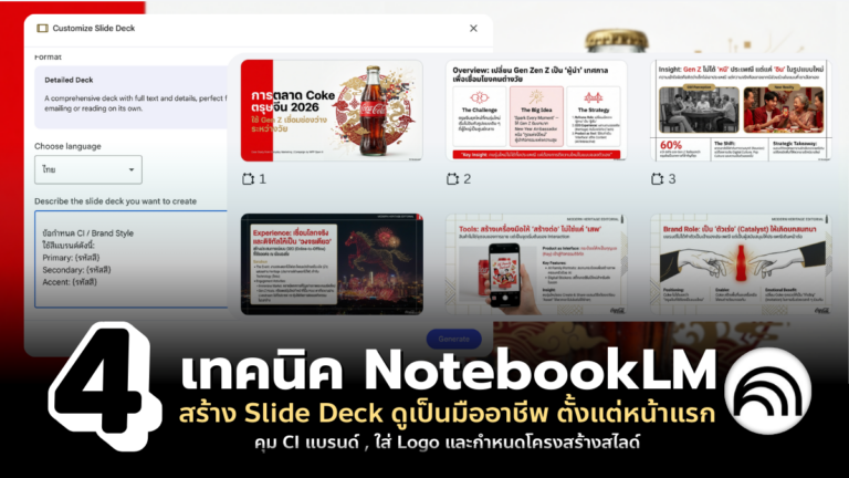 NotebookLM ไม่ได้ถูกออกแบบมาเพื่อทำสไลด์โดยตรง แต่มันคือเครื่องคิดที่ทรงพลังมาก ถ้าใช้ถูกวิธี คุณจะได้โครงสไลด์ที่คิดมาแล้วครบ ทั้งเนื้อหา โครงสร้าง น้ำหนัก และจังหวะการเล่าเรื่อง ก่อนจะเอาไปจัดการต่อเพิ่ม ประเด็นสำคัญไม่ใช่แค่ให้มันสรุปข้อมูล แต่ต้องสั่งให้มันออกแบบความคิดแทนเรา บทความนี้จะพามาดู 4 เทคนิค NotebookLM สร้าง Slide Deck ให้ดูเป็นมืออาชีพ ตั้งแต่หน้าแรกถึงหน้าสุดท้ายครับ สำหรับคนที่เพิ่งเคยได้ยินนะครับ เจ้า NotebookLM คือเครื่องมือ AI จาก Google ที่ทำหน้าที่เหมือนผู้ช่วยอ่านและคิดให้เรา สามารถอัปโหลดเอกสาร เว็บไซต์ หรือไฟล์อ้างอิงเข้าไป แล้วมันจะวิเคราะห์ สรุป เชื่อมโยงประเด็น และตอบคำถามจากข้อมูลของเราเอง ไม่ใช่แค่ดึงความรู้ลอย ๆ จากอินเทอร์เน็ต จุดแข็งของมันคือการทำงานบนฐานข้อมูลที่เราป้อนเข้าไป ทำให้เหมาะกับงานวิเคราะห์ สร้างโครงบทความ เตรียมพรีเซนเทชัน หรือสกัด Insight จากเอกสารจำนวนมาก พูดง่าย ๆ มันไม่ใช่แค่แชตบอท แต่มันคือเครื่องมือจัดระบบความคิดที่ช่วยให้ข้อมูลกระจัดกระจาย กลายเป็นโครงสร้างที่พร้อมใช้งานจริง รวมทั้งสามารถสร้างไฟล์ต่าง ๆ เช่น เสียง […]