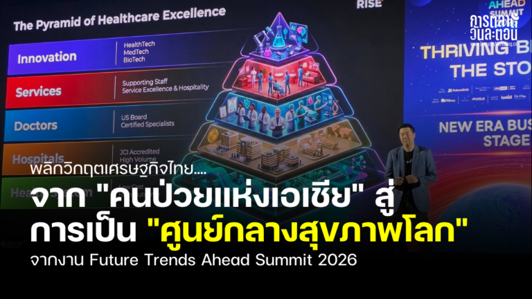 หลายคนคงเห็นข่าวที่สื่อระดับโลกอย่าง Financial Times และ Bloomberg ประเมินว่าเศรษฐกิจไทยตอนนี้กำลังเติบโตชะลอตัวลงจนมีสภาพคล้าย “คนป่วยแห่งเอเชีย” คำถามคือ ท่ามกลางยุคที่โลกแบ่งขั้วอำนาจและเทคโนโลยี AI เข้ามามีบทบาทในทุกอุตสาหกรรม… ธุรกิจไทยและประเทศของเราจะเดินหน้าต่อไปในทิศทางไหน? ประเด็นนี้ถูกนำมาวิเคราะห์ไว้อย่างน่าสนใจใน เซสชัน Global Trends 2026: เจาะเทรนด์โลก มุมมองจาก World Economic Forum 2026 โดย นพ.ศุภชัย ปาจริยานนท์ (หมอคิด) CEO และผู้ร่วมก่อตั้ง RISE จากเวที Future Trends Ahead Summit 2026 ครับ วันนี้ผมเลยขอสรุปใจความสำคัญว่าทำไมอุตสาหกรรม “เทคโนโลยีสุขภาพ (HealthTech)” ถึงเป็นทางออกที่อาจช่วยพลิกฟื้นเศรษฐกิจระดับประเทศได้ครับ 🚨 วิกฤตเศรษฐกิจ เมื่อเครื่องยนต์เดิมเริ่มชะลอตัว หลายสิบปีที่ผ่านมา ภาพจำของไทยในสายตาชาวโลกคือเมืองท่องเที่ยวและฐานการผลิต แต่ปัจจุบันจุดขายเหล่านี้เริ่มเข้าสู่ภาวะอิ่มตัว ลองนึกภาพตามนะครับ ถ้าเราอยากให้รายได้จากการท่องเที่ยวในประเทศโตขึ้นเป็น 2 เท่า เราอาจจะต้องหาคนเข้าประเทศถึง 60 ล้านคนเลยทีเดียว ซึ่งเป็นเรื่องที่ท้าทายมากเมื่อต้องแข่งขันกับประเทศอย่างญี่ปุ่น ส่วนภาคอุตสาหกรรมก็ต้องเผชิญกับการแข่งขันด้านราคาจากประเทศเพื่อนบ้าน […]