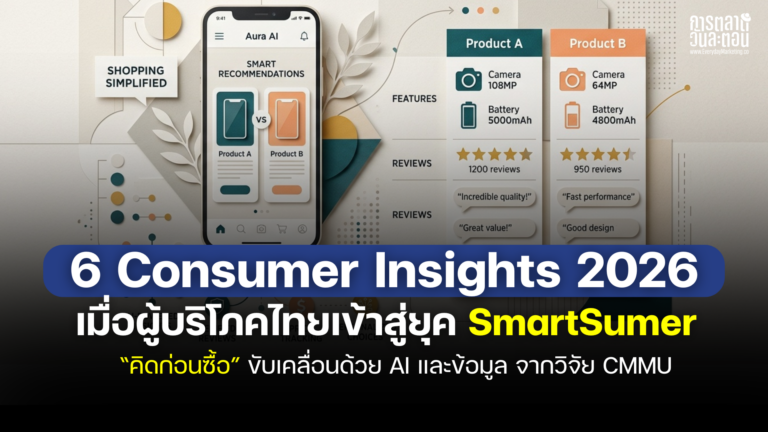 ถ้าช่วงนี้ใครรู้สึกว่า “ซื้อของยากขึ้น” ไม่ใช่เพราะเงินน้อยลงอย่างเดียวแต่อาจเป็นเพราะเราคิดมากขึ้นค่ะ เบลล์เองก็เป็นหนึ่งในนั้นนะคะที่ก่อนจะซื้ออะไรสักอย่างก็ต้องเปิดดูรีวิวเทียบราคาหรือบางครั้งก็ลองถาม AI ก่อนตัดสินใจ ซึ่งสิ่งนี้ไม่ใช่แค่พฤติกรรมที่เกิดขึ้นส่วนตัวแต่กำลังเกิดขึ้นกับคนทั้งประเทศ ผลวิจัย Consumer Insights 2026 จาก CMMU ระบุว่า กว่า 90% ของผู้บริโภคไทยในทุกเจเนอเรชัน กำลังเปลี่ยนไปสู่การ “คิดก่อนซื้อ” อย่างชัดเจน ภายใต้แรงกดดันจากค่าครองชีพ รายได้ และเศรษฐกิจที่ผันผวน ผู้บริโภคไทยไม่ได้แค่ประหยัดขึ้นแต่กำลัง “ตัดสินใจอย่างมีระบบมากขึ้น” และนี่คือจุดเริ่มต้นของยุคที่เรียกว่า SmartSumer จากวิจัยของ CMMU ค่ะ 1. SmartSumer ผู้บริโภคที่ไม่ได้มองหาของถูก แต่หาของที่ “คุ้มที่สุด” คำว่า SmartSumer ไม่ได้หมายถึงแค่คนที่เก่งเทคโนโลยีหรือใช้เครื่องมือดิจิทัลเป็นเท่านั้นค่ะ แต่หมายถึงผู้บริโภคที่ “คิด วิเคราะห์ และเลือก” อย่างมีเหตุผลก่อนใช้เงินในทุกการตัดสินใจ สิ่งที่เปลี่ยนไปอย่างชัดเจนคือ จากเดิมที่ผู้คนมักมองหาสินค้าที่ราคาถูกที่สุดกลายมาเป็นการมองหา “ความคุ้มค่า (Value for Money)” ที่ครอบคลุมมากกว่าแค่ตัวเลขบนป้ายราคา เพราะความคุ้มค่าในมุมของผู้บริโภคยุคนี้รวมไปถึงคุณภาพสินค้า อายุการใช้งาน ประโยชน์จริงในการใช้งาน ไปจนถึงความรู้สึกหลังการซื้อว่า “ตัดสินใจไม่พลาด” […]