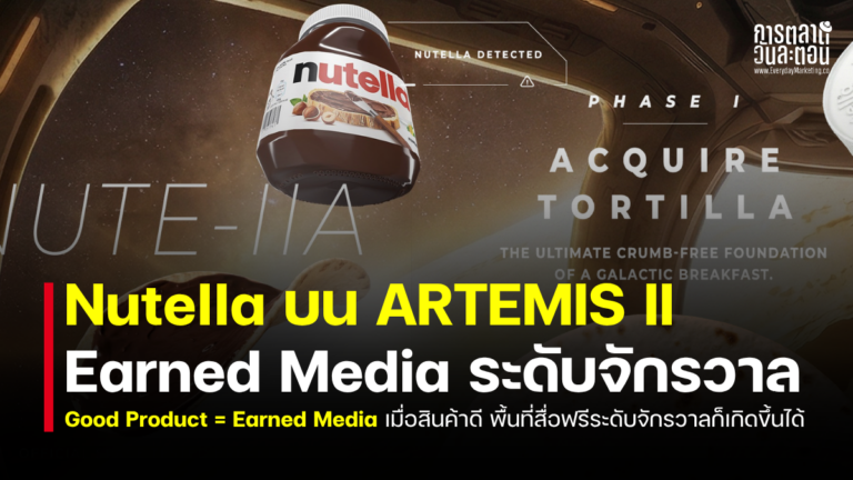 เชื่อว่าหลายคนน่าจะพอได้ยินข่าวภารกิจอวกาศครั้งสำคัญอย่าง Artemis II ของ NASA ที่เตรียมส่งมนุษย์กลับไปโคจรรอบดวงจันทร์กันมาบ้างแล้วใช่ไหมครับ แต่สิ่งที่น่าตกใจและกลายเป็นไวรัลแย่งซีนเทคโนโลยีสุดล้ำบนหน้าจอถ่ายทอดสด แต่คือ กระปุก Nutella บน Artemis II ภาพกระปุกแยมที่ลอยผ่านกล้องในสภาวะไร้น้ำหนักนี้ ไม่ได้เป็นแค่เรื่องบังเอิญขำ ๆ แต่กลายเป็นกรณีศึกษาทางการตลาดที่น่าสนใจมากครับ มันช่วยตอกย้ำว่า สุดยอดสื่อที่ได้มาฟรี หรือ Earned Media อาจไม่ได้เกิดจากการทุ่มงบโฆษณามหาศาลเสมอไป แต่เริ่มจากการมี Product ที่เข้าไปอยู่ในชีวิตประจำวันของผู้บริโภคได้อย่างแท้จริงครับ The Unexpected Cameo ไวรัลอวกาศที่แม้แต่ผู้บริหารยังอึ้ง จุดเริ่มต้นของไวรัลนี้เกิดขึ้นระหว่างการถ่ายทอดสดจากภายในยาน Orion ครับ จู่ ๆ กระปุก Nutella ก็ลอยผ่านหน้ากล้องไปอย่างช้า ๆ ในสภาวะไร้น้ำหนัก โดยหันด้านโลโก้เข้าหาผู้ชมพอดีเป๊ะ แม้จะปรากฏให้เห็นแค่ไม่กี่วินาที แต่มันก็ถูกชาวเน็ตแคปเจอร์และแชร์ต่อบนโซเชียลมีเดียอย่างรวดเร็ว View this post on Instagram A post shared by CNN (@cnn) สิ่งที่ทำให้ภาพนี้ดูมีพลังและดึงดูดความสนใจคือ […]