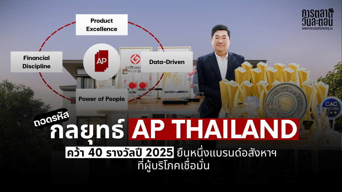 ในปี 2568 หลายคนต่างนิยามว่าเป็นปี “ปราบเซียน” ของโลกธุรกิจ ทั้งความผันผวนทางเศรษฐกิจที่คาดเดาไม่ได้และภัยธรรมชาติที่เกิดขึ้นทั่วโลก แต่ท่ามกลางคลื่นลมแรงนี้ AP Thailand กลับยืนหยัดได้อย่างมั่นคง พร้อมสร้างปรากฏการณ์กวาดรางวัลทั้งระดับโลก, ภูมิภาคเอเชีย และในไทยไปถึง 40 รางวัล คำถามที่น่าสนใจสำหรับนักการตลาดจึงไม่ใช่แค่ “เขาได้รางวัลอะไร?” แต่ต้องเจาะลึกไปถึง “ทำไมเขาถึงทำได้?” วันนี้ผมจะพาทุกคนไปถอดรหัส กลยุทธ์ AP เบื้องหลังความสำเร็จนี้กันครับ ว่าการจะเป็นเบอร์หนึ่งในยุคนี้ ต้องพกอาวุธลับอะไรติดตัวบ้าง?
