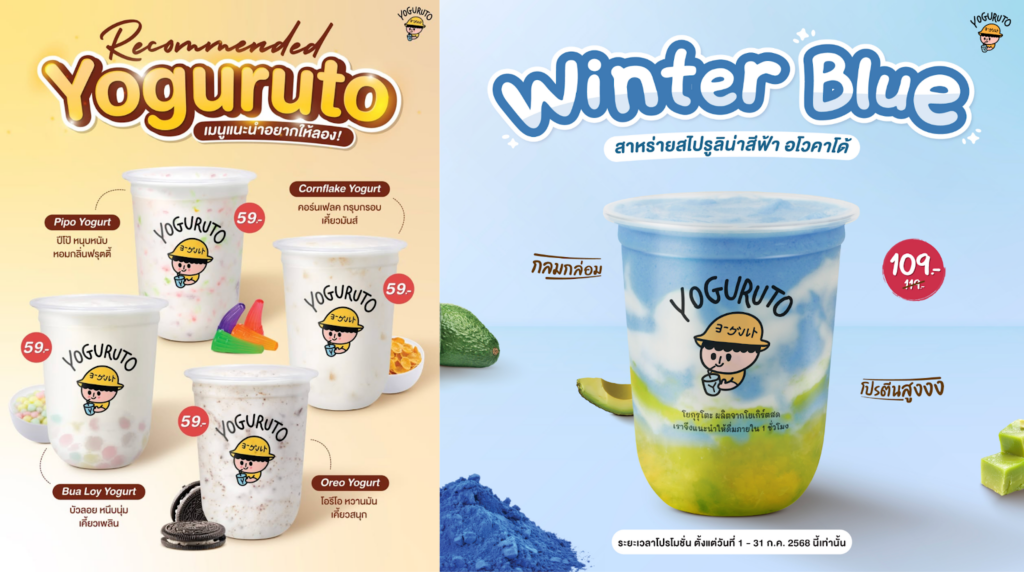 แม้จะมีเมนู Signature ที่ขายดิบขายดีอย่างโยเกิร์ตข้าวไรซ์เบอร์รี่ แต่ Yoguruto ไม่เคยปล่อยให้แบรนด์หยุดนิ่งหรือน่าเบื่อเลยครับ Yoguruto ใช้กลยุทธ์ Seasonal Marketing อย่างต่อเนื่อง เพื่อสร้างความตื่นเต้นให้กับตลาด โดยการหยิบจับผลไม้ตามฤดูกาลหรือเทรนด์ความนิยมในช่วงเวลานั้น ๆ มาสร้างสรรค์เมนูใหม่ การออกเมนู Limited Time Offer เหล่านี้กระตุ้นให้เกิดความ FOMO และเร่งให้ลูกค้าต้องรีบมาลองชิมครับ