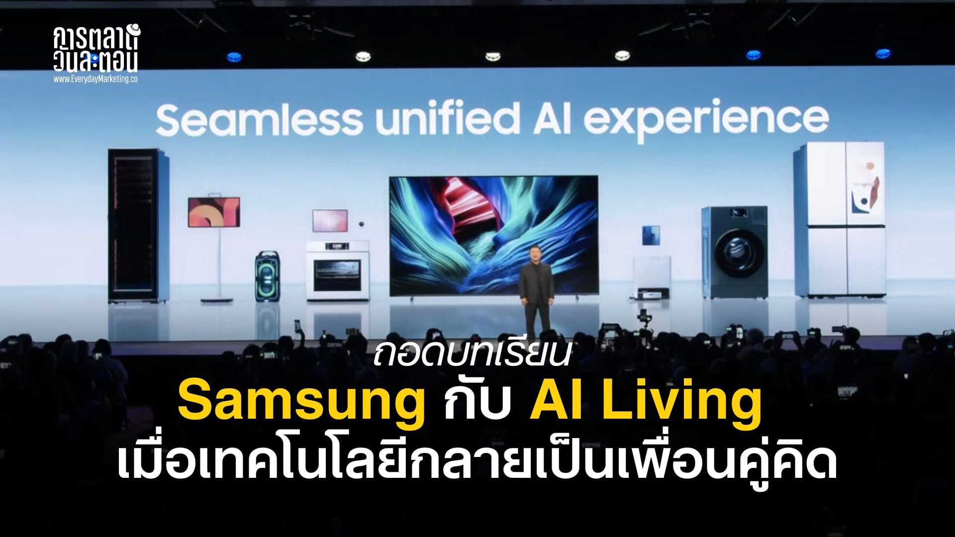 เชื่อว่าตลอด 20 ปีที่ผ่านมา ในบ้านของพวกเราน่าจะต้องมีอุปกรณ์ของ Samsung อยู่สักชิ้นแน่ๆ ไม่ว่าจะเป็นทีวี สมาร์ทโฟนหรือเครื่องใช้ไฟฟ้า เรียกว่าเป็นแบรนด์ที่อยู่คู่ทุกจังหวะชีวิตของคนทั่วโลกเลยก็ว่าได้ค่ะ แต่ล่าสุดในงาน CES 2026 ซัมซุงไม่ได้มาแค่เปิดตัวสินค้าใหม่แต่ประกาศวิสัยทัศน์สุดล้ำอย่าง Your Companion to AI Living หรือการขอเป็น เพื่อนคู่คิดสู่ชีวิตยุค AI ซึ่งนับจากนี้ Samsung จะไม่ได้เป็นแค่คนทำอุปกรณ์อิเล็กทรอนิกส์อีกต่อไปแต่จะเข้ามาเปลี่ยนวิถีชีวิตของเราให้สมาร์ทและง่ายขึ้นด้วยพลังของ AI ค่ะ เราไป ถอดบทเรียน Samsung กันเลยค่ะ
