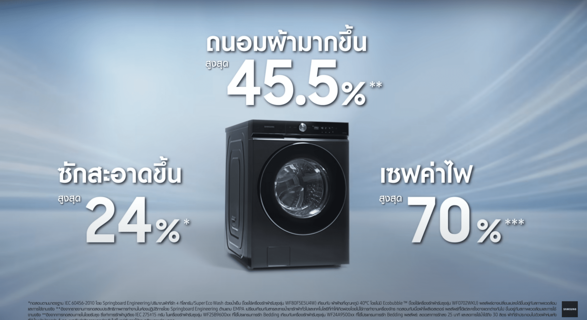 จึงเป็นเหตุให้แคมเปญ Let AI Gens Your Life ถูกพัฒนาขึ้นมาเพื่อตอบโจทย์ความต้องการเหล่านี้ครับ โดยการนำ AI มาช่วยให้การซักผ้าง่ายขึ้น ไม่ว่าจะเป็นการตรวจจับเนื้อผ้า การควบคุมปริมาณน้ำยาซักผ้า หรือแม้แต่การประหยัดพลังงานครับ โดยสื่อออกมาผ่านโฆษณาครับสามารถชมภาพยนตร์โฆษณา Let AI Gens Your Life ได้ที่ช่องทาง YouTube Samsung Thailand หรือลิ้งค์ https://youtu.be/S604-aAmww4?feature=shared ได้เลยครับ