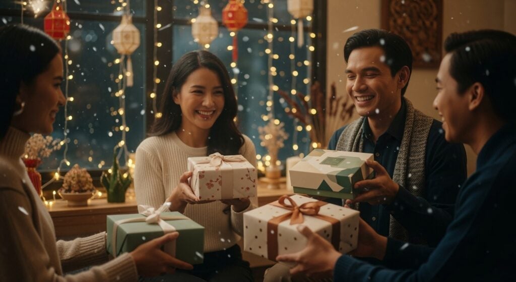 ขอบคุณภาพจาก Shutterstock AI Generator Prompt : A hyper-realistic, cinematic scene of Thai people exchanging New Year gifts in a warm, festive setting. Capture authentic Thai features, joyful expressions, and a cozy atmosphere with golden fairy lights, subtle decorations, and soft celebratory sparkles. Show elegant gift boxes being presented or received, wrapped in refined, modern Japanese-inspired packaging to evoke exclusivity and seasonal anticipation. Include gentle winter-like elements—soft falling snow or cool mist—blending naturally into a tropical Thai environment to symbolize a limited-time seasonal moment. No text. Premium, emotional, Instagrammable, and visually irresistible.