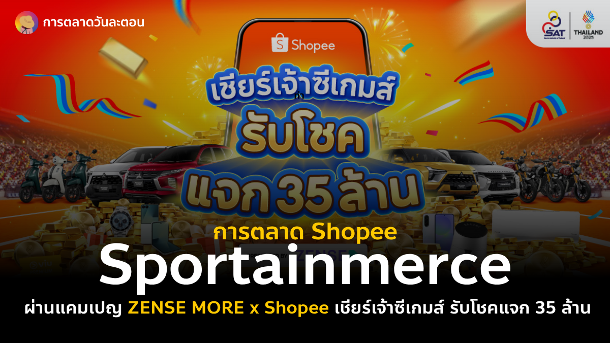 ครั้งนี้ Zense More บริษัท Entertainment ชั้นนำของไทย จับมือกับ Shopee แพลตฟอร์ม E-commerce อันดับหนึ่งของเอเชียตะวันออกเฉียงใต้ เปิดตัวแคมเปญใหญ่ “เชียร์เจ้าซีเกมส์ รับโชคแจก 35 ล้าน” ภายใต้แนวคิดใหม่ที่เรียกว่า Sportainmerce การผสานพลังของ Sport + Entertainment + Commerce เข้าด้วยกันเป็นครั้งแรกในไทยและภูมิภาคครับ พูดให้เข้าใจง่าย ๆ คือการเปลี่ยนการเชียร์กีฬาให้กลายเป็นสนามแห่งการช้อปปิ้งที่ทุกคนมีส่วนร่วมได้จริง ทั้งเชียร์กีฬา ลุ้นของรางวัล และช้อปสนุกไปพร้อมกันครับ
