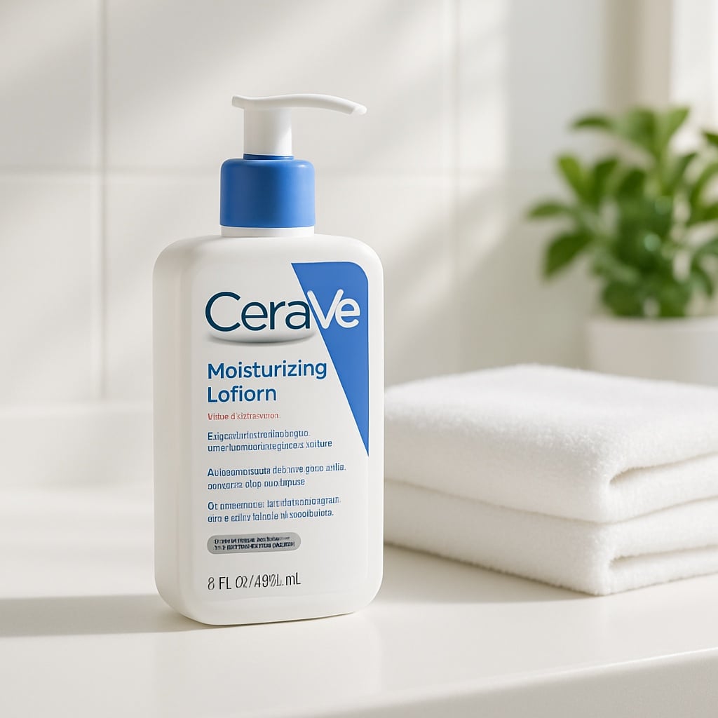 ขอบคุณภาพจาก Shutterstock AI Generator Prompt : A CeraVe skincare product placed on a clean white bathroom counter with soft morning light. The scene looks minimal, clinical, and trustworthy. A folded white towel is beside the product, with a green indoor plant slightly blurred in the background. The product label is visible. Bright, airy composition, soft shadows, dermatology aesthetic, high-resolution, realistic photography.
