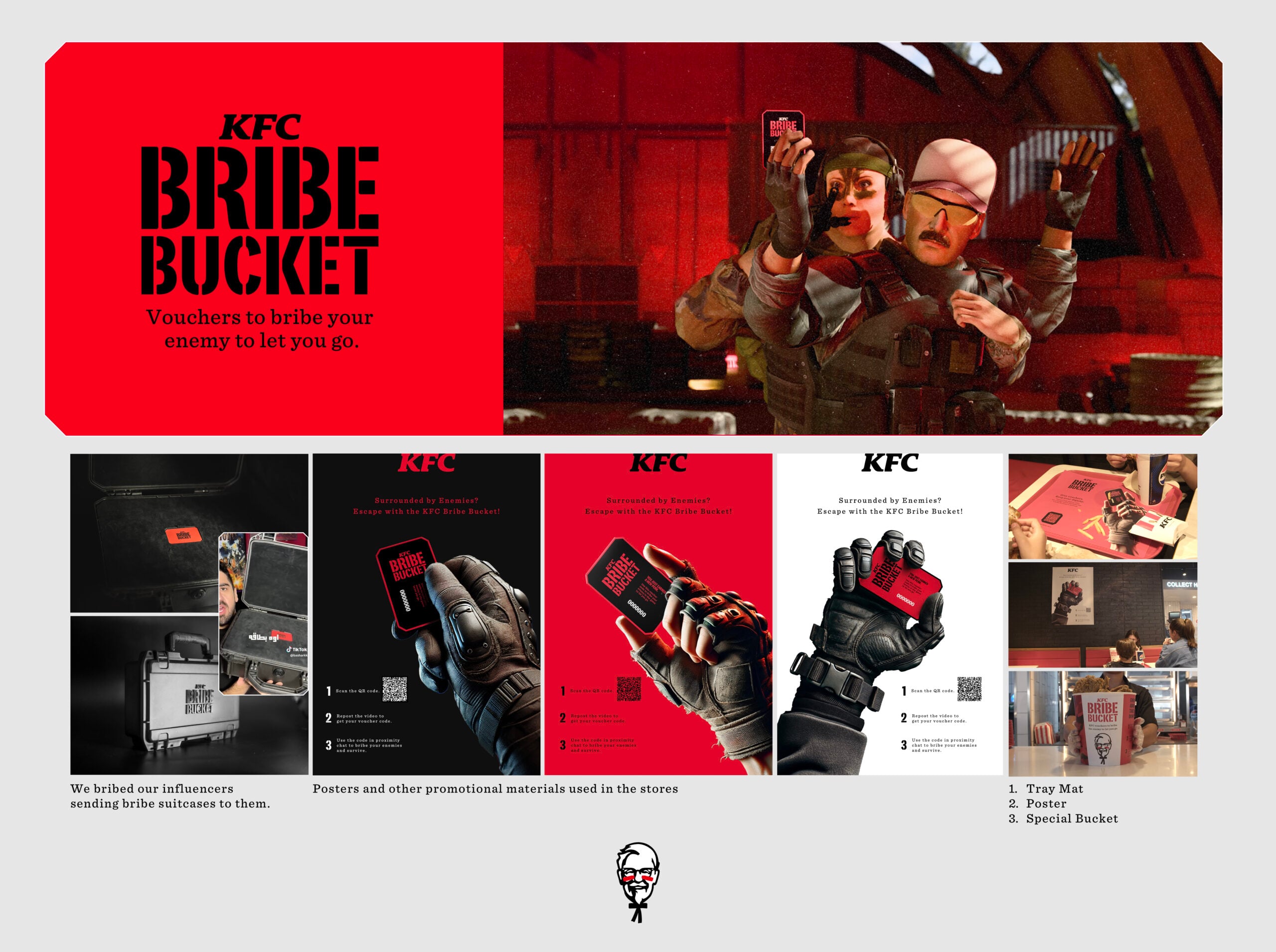สิ่งที่ KFC ทำ ไม่ใช่การซื้อพื้นที่ในเกม และไม่ใช่การทำไอเท็มพิเศษติดโลโก้ แต่เป็น การเข้าไปใช้ “ฟีเจอร์ที่มีอยู่แล้ว” ของเกม Call of Duty: Warzone ให้กลายเป็นกลไกของแบรนด์ เมื่อผู้เล่นสามารถพูดคุยกับศัตรูได้ นั่นหมายความว่าในจังหวะที่กำลังจะถูกยิง ผู้เล่นสามารถ “ต่อรองกับศัตรู” เพื่อให้ตัวเองยังรอดชีวิตต่อไปในเกมได้ แล้วถ้าถามว่าต้องทำยังไงล่ะคะ? คำตอบที่ได้คือ KFC คิดแคมเปญ Bribe Bucket ออกมา โดยการ แจกคูปองไก่ทอดจริงผ่านแคมเปญบนโซเชียล โดยเฉพาะ TikTok ใครร่วมกิจกรรมหรือแชร์คอนเทนต์ ก็จะมีโอกาสได้คูปองไปใช้ที่ร้านจริงนั่นเองค่ะ และคูปองนั้นกลายเป็นของที่ผู้เล่นเอาไปใช้ต่อรองชีวิตในเกม ภาพที่เกิดขึ้นจึงไม่ใช่โฆษณา แต่เป็นสถานการณ์แบบนี้