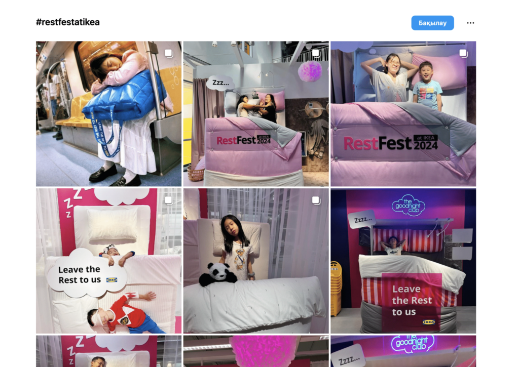 และ IKEA ยังใช้การตลาดแบบ User-Generated Content (UGC) ในการสร้างการมีส่วนร่วมผ่านสื่อสังคมออนไลน์ ที่ให้ลูกค้าโพสต์ภาพ Resten Bag ของตัวเองพร้อมแฮชแท็กเพื่อโปรโมตแบรนด์และสินค้า การออกแบบที่ใช้ถุง Frakta ทำให้ Resten Bag โดดเด่นและเกิดภาพจำของการใช้งานง่าย พกพาไปได้ทุกที่