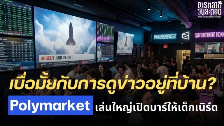 FacebookFacebookXXLINELineสวัสดีครับทุกคน เวลาเราดูบอลไปร้านเหล้า ภาพจำที่เราคุ้นเคยคือการลุ้นผลฟุตบอลแมตช์สำคัญที่หน้าจอทีวีใช่มั้ยครับ? แต่ลองนึกดูสิครับว่า จะเกิดอะไรขึ้นถ้าภาพบนหน้าจอไม่ได้ฉายการแข่งขันของนักเตะ แต่เป็นกราฟสถิติแบบเรียลไทม์ พร้อมคำถามที่ให้คนมาลงเงินทายผลว่า “สงครามยูเครนจะเกิดการหยุดยิงเมื่อไหร่?” หรือ “ใครจะคว้าตั๋วชิงเก้าอี้ประธานาธิบดีสหรัฐฯ ในสมัยหน้า?” นี่คือแคมเปญการตลาดของ Polymarket ครับ ก่อนอื่นต้องขอเล่าก่อนครับว่า Polymarket คือ แพลตฟอร์ม Prediction Market ที่เปิดให้ผู้คนเอาเงินมาวางเดิมพันเพื่อทายผลเหตุการณ์ต่าง ๆ ที่จะเกิดขึ้นจริง อ่านมาถึงตรงนี้หลายคนอาจจะสงสัยว่า ผิดกฎหมายรึเปล่า เป็นการพนันหนิ ก่อนอื่นต้องบอกให้เคลียร์ก่อนเลยนะครับว่า นี่ไม่ใช่แพลตฟอร์มการพนันผิดกฎหมาย ซึ่งแพลตฟอร์มใช้หลักการทำงานคล้ายกับตลาดหลักทรัพย์ครับ เพียงแต่เปลี่ยนจากการซื้อขายหุ้น มาเป็นการซื้อขายความน่าจะเป็นของเหตุการณ์จริงในโลกครับ โดยผู้เล่นต้องอาศัยการวิเคราะห์ข้อมูล สถิติ และทิศทางข่าวสารมาเป็นตัวตัดสินใจ จริง ๆ มีศาสตราจารย์จาก MIT ได้กำไรสูงถึง 400K USD จากการคาดการณ์ตลาดสภาพอากาศด้วยครับ แต่วันนี้เราไม่ได้มารีวิวแพลตฟอร์มแต่เราจะมาดูแคมเปญการตลาดของ Polymarket โดยเล่นใหญ่จัดแคมเปญ “The Situation Room” ขึ้นมาตั้งอยู่ใจกลาง Washington, D.C. ศูนย์กลางอำนาจการเมืองของโลกครับ ผมขอพาทุกคนไปถอดรหัสแคมเปญนี้กับบทความ การตลาด Polymarket […]
