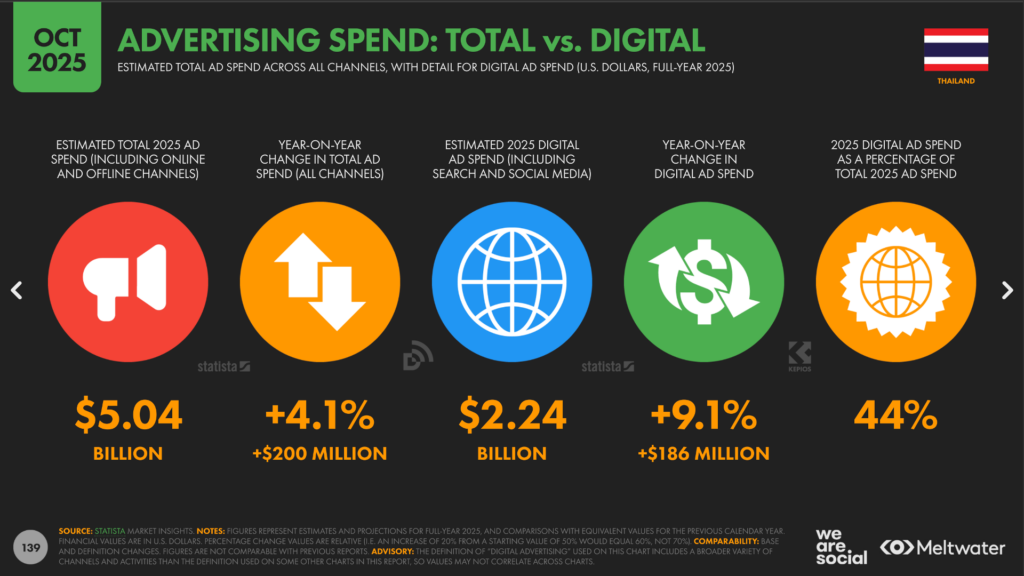 สรุป 34 Digital Advertising Stat & Insight 2026 Thailand ข้อมูลรายงานสถิติงบการตลาดและโฆษณาดิจิทัลประเทศไทย