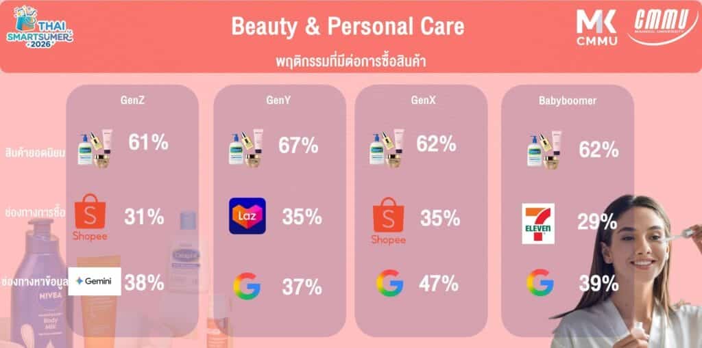 Beauty & Personal Care ผู้บริโภคกว่า 72–86% เริ่มให้ความสำคัญกับคุณภาพและผลลัพธ์จริงมากขึ้น และกว่า 30% พร้อมใช้ AI วิเคราะห์ข้อมูลเชิงลึกของผลิตภัณฑ์ สะท้อนการตัดสินใจที่ขับเคลื่อนด้วยข้อมูลมากกว่าภาพลักษณ์