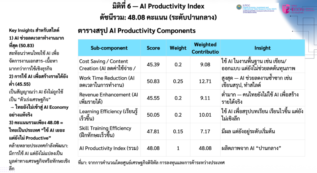 6. AI Productivity เก่งใช้ลดงานซ้ำซาก แต่ยังไม่เก่งใช้เชิงกลยุทธ์หาเงิน