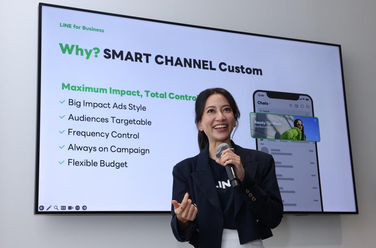 หนึ่งในฟอร์แมตที่โตแรงสุดบน LINE Ads คือ Smart Channel Custom ที่มีอัตราเติบโตสูงถึง 53% ด้วยตำแหน่งและรูปแบบโฆษณาอันโดดเด่น พร้อมจุดเด่นที่สามารถเลือกยิงไปหากลุ่มเป้าหมายตามความสนใจได้ละเอียด ควบคุมความถี่ และต่อเนื่องได้นานสูงสุด 30 วัน ทำให้คนเห็นซ้ำจนจำได้