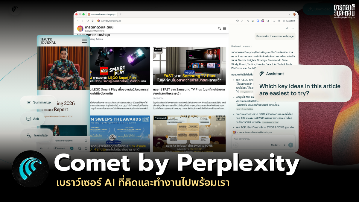 ถ้าเราย้อนกลับไปไม่กี่ปีก่อน วิธีใช้อินเทอร์เน็ตของคนทำงานแทบทุกสายจะเหมือนกัน เปิดเบราว์เซอร์ พิมพ์คำค้น คลิกหลายแท็บ อ่านเอง คิดเอง แล้วพอเริ่มสับสนหรืออยากสรุป ก็สลับไปถาม AI ในอีกหน้าต่างหนึ่ง วนแบบนี้ซ้ำไปซ้ำมา ซึ่งก่อนหน้านี้เราได้แนะนำ ChatGPT Atlas เพื่อเข้ามาช่วย แต่หนึ่งในข้อจำกัดสำคัญของ Atlas คือ เปิดให้ใช้งานบน macOS เป็นหลัก บทความนี้เลยจะพามาทำความรู้ Comet by Perplexity เบราว์เซอร์ AI อีกตัวที่เป็นผู้ช่วยคิดและทำงานไปพร้อมเรา และสามารถใช้งานได้บน Windows ด้วยครับ
