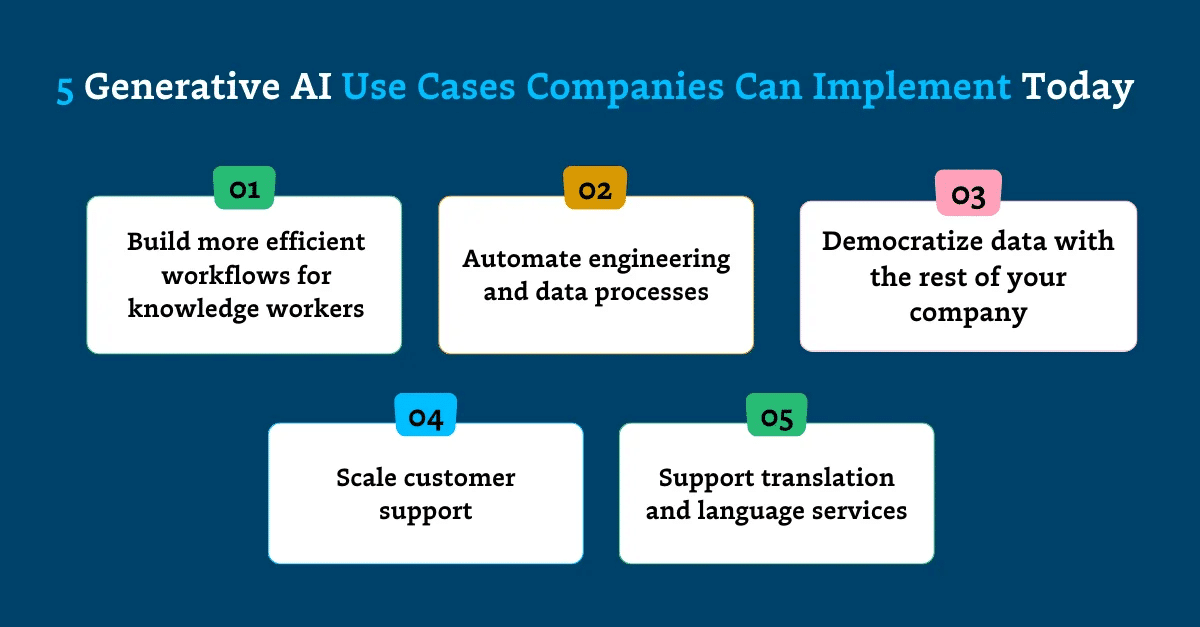 การสร้างเนื้อหา: Gen AI สามารถใช้ในการสร้างข้อความการตลาด รายละเอียดสินค้า และโพสต์โซเชียลมีเดีย รวมถึงเนื้อหาที่มีความละเอียด ซับซ้อน เช่น บทกวี บทละคร งานดนตรี อีเมล จดหมาย เป็นต้น