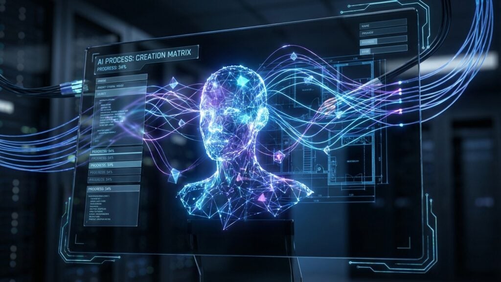ขอบคุณภาพจาก Shutterstock AI Generator artificial intelligence thinking before creation, holographic visuals forming step by step, layered planning interface, abstract glowing shapes organizing into image, futuristic UI, dark background, high detail, conceptual, minimal