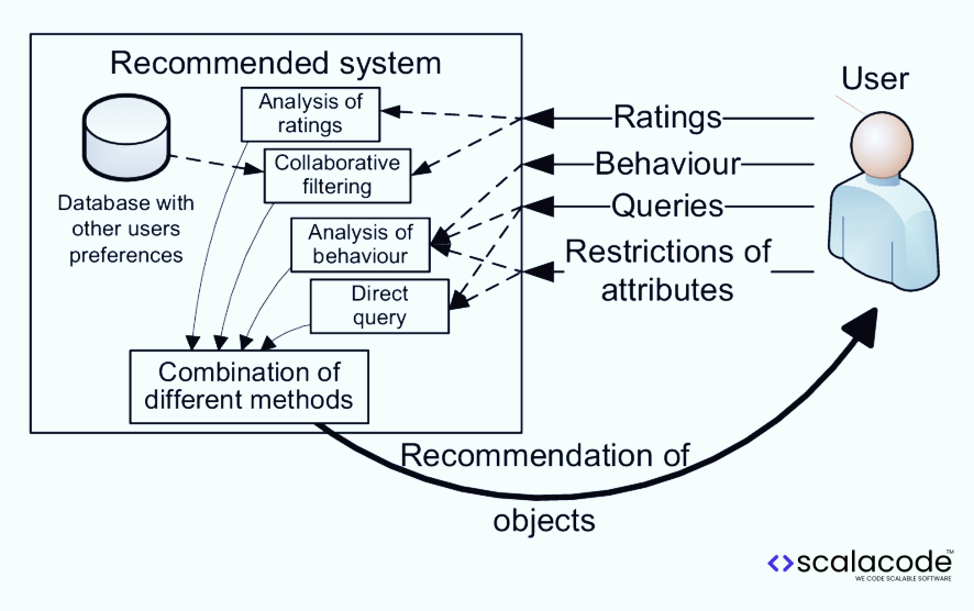 - Content-based Filtering: ใช้คุณลักษณะของสินค้าเอง เช่น รูปภาพหรือข้อความ เพื่อหาไอเท็มที่คล้ายกัน เหมาะสำหรับสินค้าที่มีจำนวนมากแต่มีข้อมูลพฤติกรรมไม่พอ (Long-tail Products) (Performance Gain ประมาณ 30% เมื่อรวมกับวิธีอื่น)
