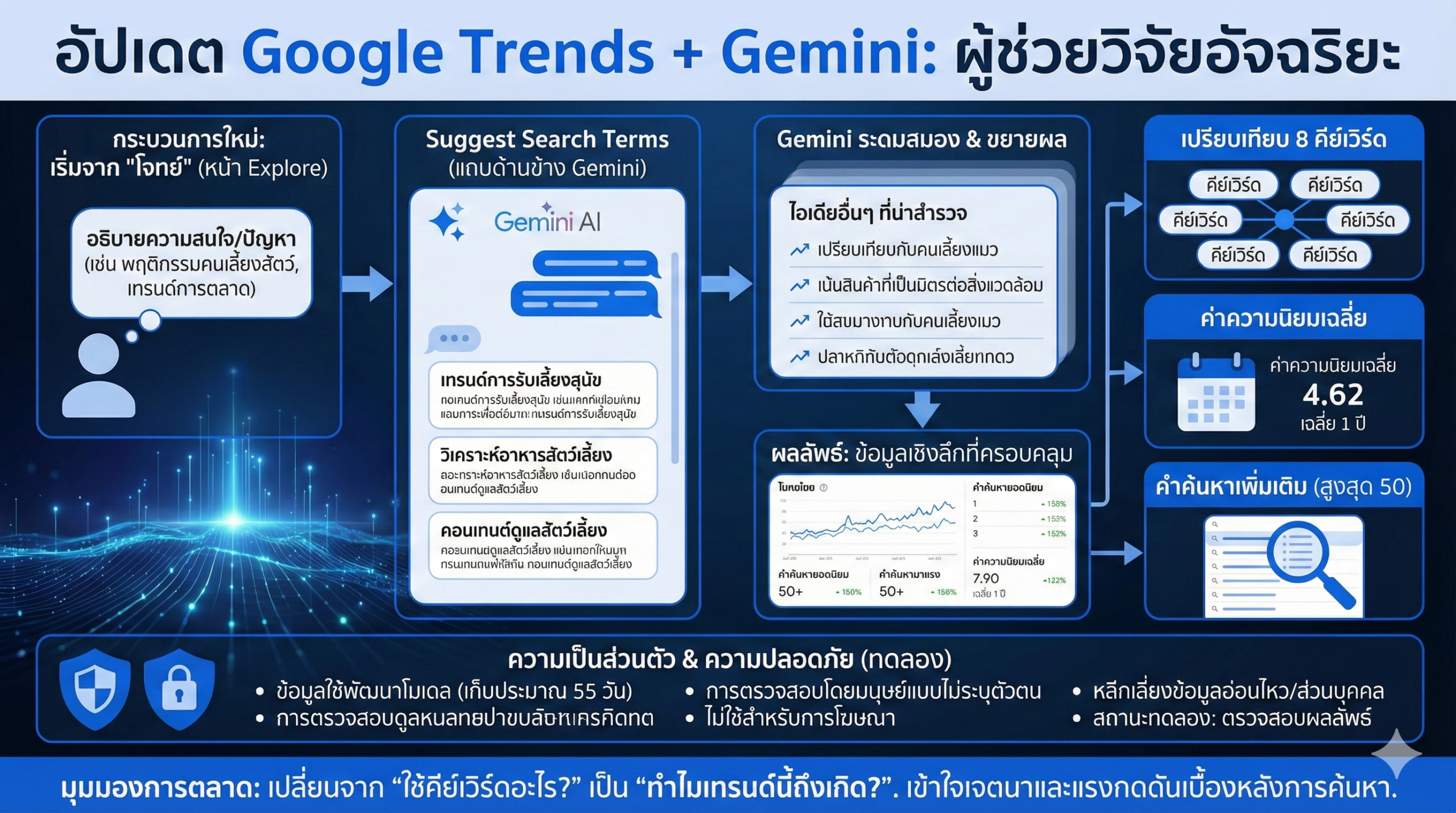 นี่คือ อัปเดต Google Trends ใช้ Gemini เข้ามาช่วยเป็น Research Assistant ทุกวันนี้เทคโนโลยีไปไกลมากขึ้น ถ้าเราใช้อย่างถูกต้องก็จะสามารถสร้างประโยชน์ให้เรามากมายมหาศาลครับ ทั้งด้านการทำงาน และในชีวิตประจำวัน แต่หากใช้ผิดวิธีก็จะเกิดโทษได้ครับ