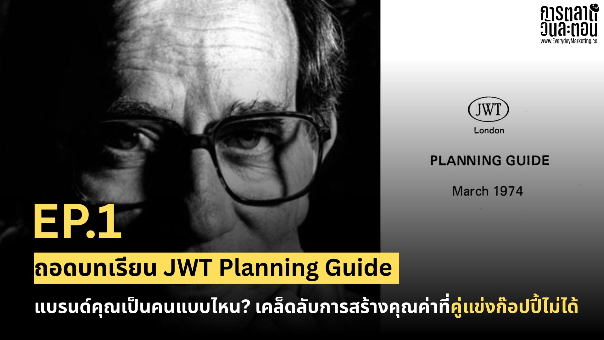 JWT ย่อมาจาก J. Walter Thompson ซึ่งเป็นเอเจนซี่โฆษณายักษ์ใหญ่ระดับตำนานของโลก พวกเขาคือกลุ่มคนแรก ๆ ที่บุกเบิกการทำ Brand Planning ครับ J. Walter Thompson เป็นคนเขียนคู่มือ Planning Guide ขึ้นมาในปี 1974 เพื่อเปลี่ยนวิธีคิดของนักโฆษณาทั่วโลก ให้หันมาโฟกัสที่ผู้บริโภคและสอนให้รู้ว่าแบรนด์ที่ดีต้องมีชีวิตจิตใจ แม้เวลาจะผ่านไปหลายสิบปี แต่แก่นกลยุทธ์ในคัมภีร์เล่มนี้ยังคงล้ำสมัย และเป็นรากฐานสำคัญที่แบรนด์ระดับโลกยังคงใช้สร้างความได้เปรียบมาจนถึงทุกวันนี้ครับ