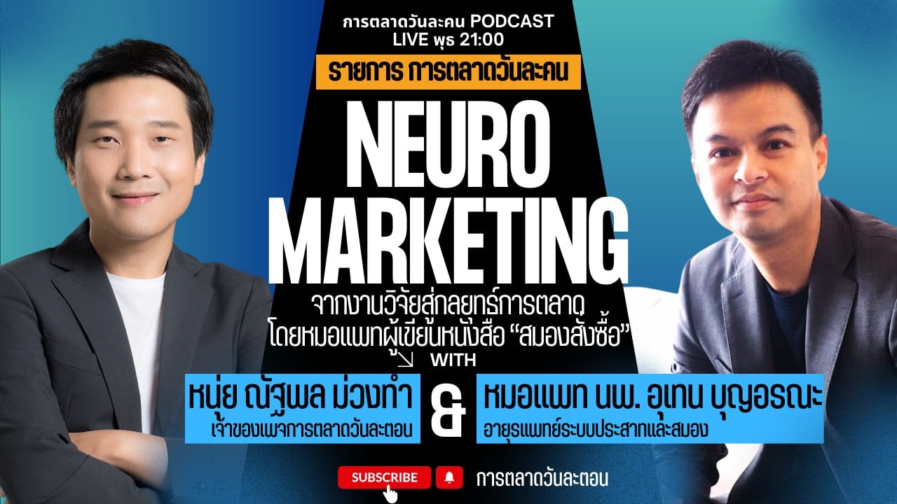 รายการ “การตลาดวันละคน” ครั้งนี้จะมาสัมภาษณ์ คุณหมอแพท นพ. อุเทน บุญอรณะ อายุรแพทย์ระบบประสาทและสมอง และนักเขียนนามปากกา หมอตุ๊ด และรังสิมันต์ จะมาเล่าเรื่องงานวิจัยทางวิทยาศาสตร์แท้ๆ ที่ส่งผลต่อพฤติกรรมการซื้อของคนจริงๆ มีอะไรบ้าง ลองไปอ่านกัน