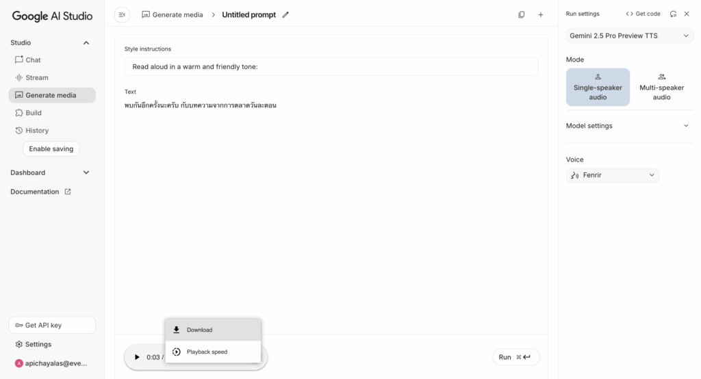 ทำความรู้จัก Google AI Studio และ AI สร้างเสียง