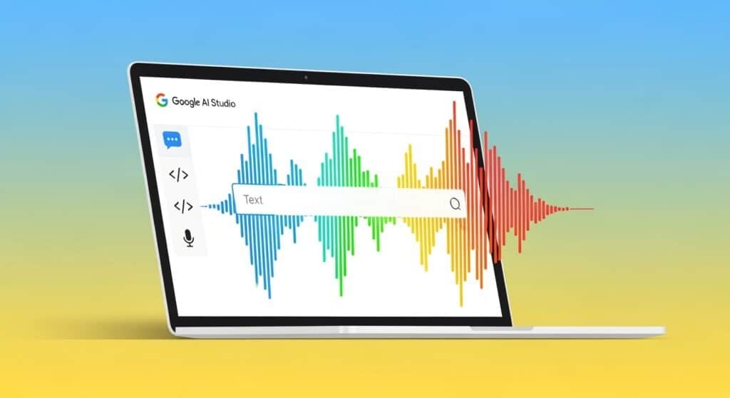 ขอบคุณภาพจาก Shutterstock AI Generator Prompt : a clean flat-style illustration of a laptop screen showing Google AI Studio interface, with text box turning into colorful audio waveforms, modern vector design, bright background, marketing infographic style.