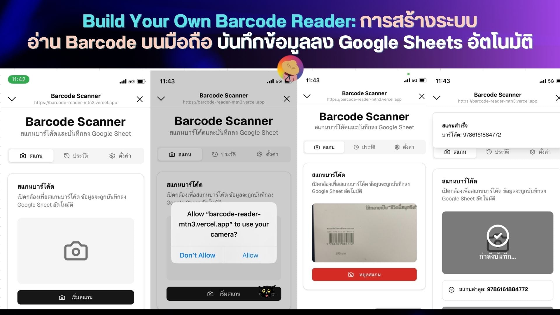 จากประเด็นร้อนเรื่อง Barcode ที่หลายคนตั้งคำถาม วันนี้เราลองถอยออกมาดูในมุมเทคโนโลยี จะเห็นว่าระบบสแกนบาร์โค้ดพื้นฐานไม่ได้ซับซ้อนอย่างที่คิด เพียง 4 ขั้นตอน: 1.เข้าเว็บ 2.วาง Script URL 3.อนุญาตกล้องและสแกน 4. ตรวจสอบข้อมูลใน Google Sheets ก็สามารถสร้างระบบบันทึกข้อมูลแบบอัตโนมัติได้แล้วค่ะ