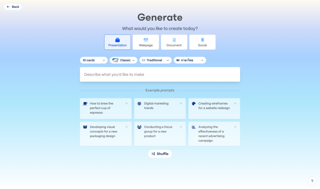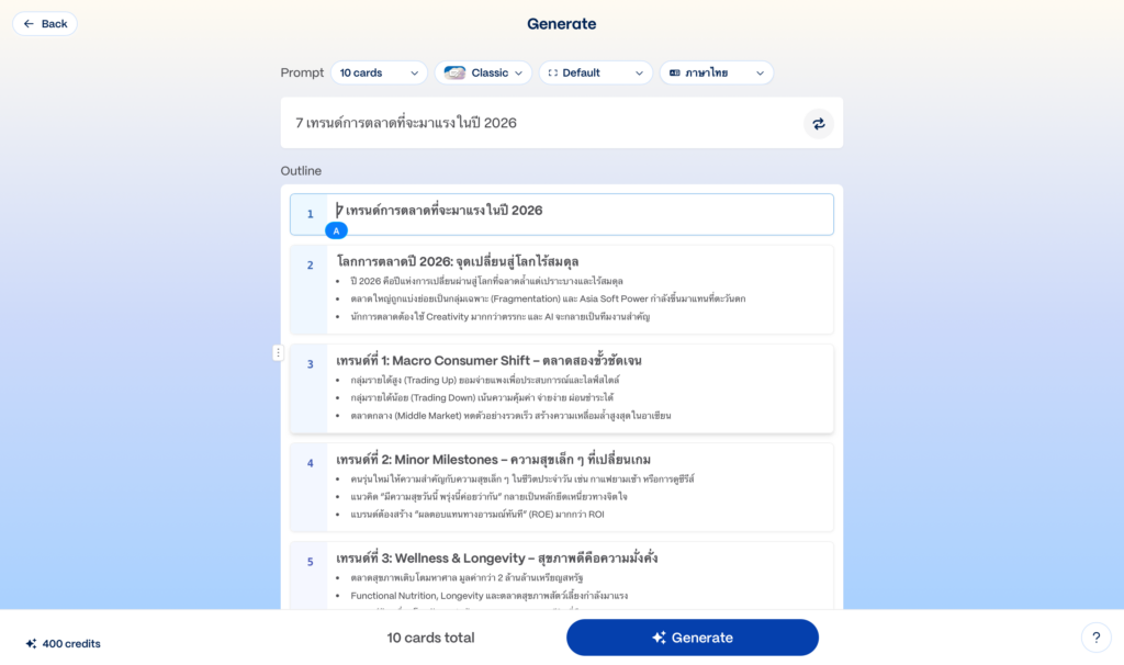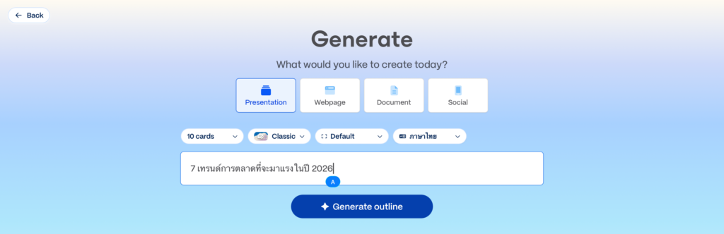Step 2: เริ่มสร้าง Presentation ด้วย AI