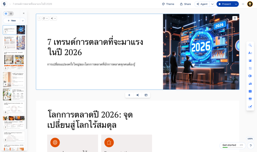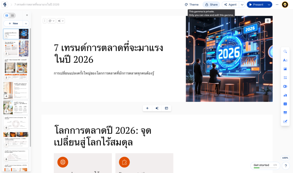 และนี่คือตัวอย่าง Presentation ที่ทำด้วย Gamma AI ให้เสกทั้งเนื้อหาและดีไซน์ทั้งหมดครับ