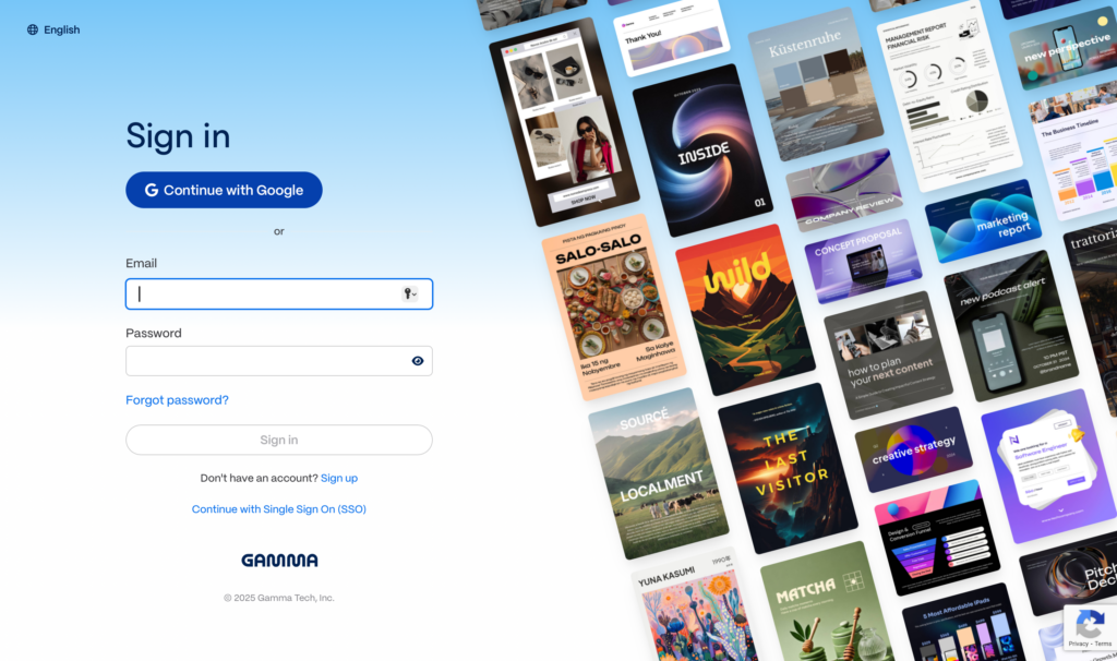 Step 1: เข้าเว็บไซต์ Gamma.app แล้วกด Sign in