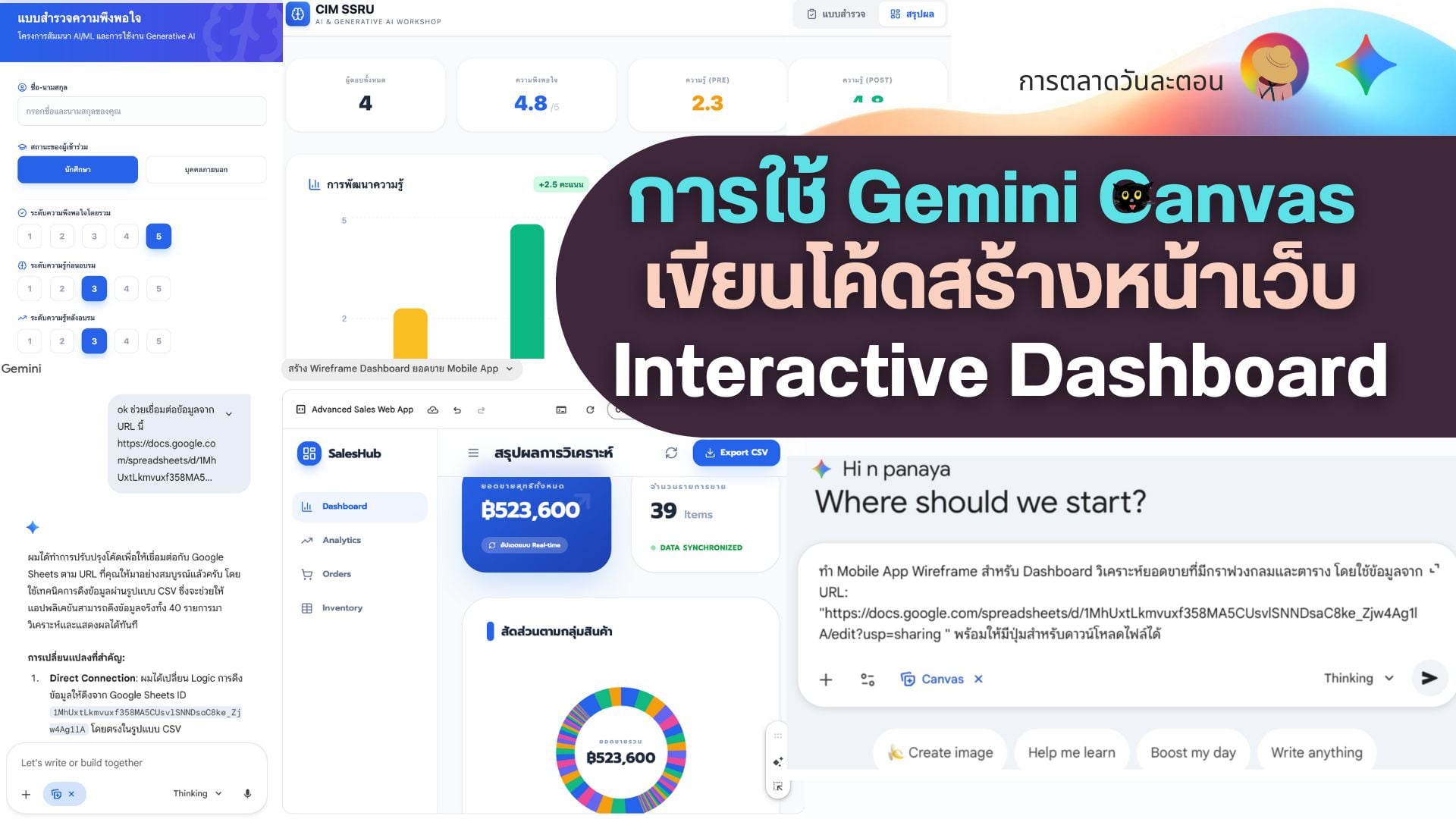 สวัสดีค่ะทุกท่าน,, เมื่อวานนิกมีโอกาสได้สอนหลักสูตร AI/ML and Generative AI Mastery ให้วิทยาลัยนวัตกรรมและการจัดการ #SSRU ซึ่งมีเนื้อหาหนึ่งที่ผู้เข้าเรียนสนใจกันมาก นั่นคือการใช้งาน “Gemini Canvas” สร้าง Interactive Dashboard ของแบบสอบถามความความพึงพอใจ แล้วนำมาแสดงเป็นผลลัพธ์โดยอัตโนมัติค่ะ
