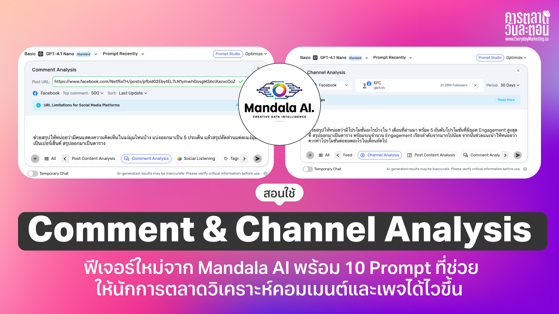 สอนใช้ Comment & Channel Analysis ฟีเจอร์ใหม่จาก Mandala AI พร้อม 10 Prompt ที่ช่วยให้นักการตลาดวิเคราะห์คอมเมนต์และเพจได้ไวขึ้น