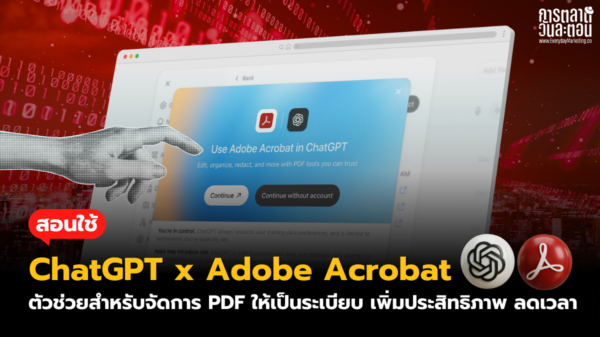 ไฟล์ PDF เป็นฟอร์แมตที่เราใช้กันจนชิน ทั้งรายงาน เอกสารประชุม แต่ PDF มักถูกมองว่าเป็นไฟล์ที่อ่านอย่างเดียว มากกว่าจะเป็นไฟล์ที่จัดการได้ง่าย เวลาอยากแก้ อยากแยก อยากรวม หรืออยากดึงเฉพาะบางส่วนไปใช้งาน ก็มักต้องเปิดหลายโปรแกรม สลับเครื่องมือไปมา บทความนี้อยากชวนมาลองใช้ ChatGPT x Adobe Acrobat ตัวช่วยสำหรับจัดการ PDF ง่าย ๆ ครับ