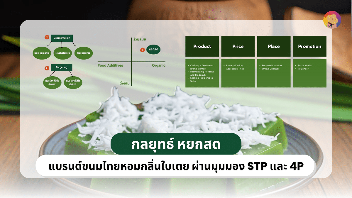 กลยุทธ์ หยกสด ถือเป็นตัวอย่างที่น่าสนใจ ด้วยการใช้ “ใบเตย” เป็นจุดขายหลักที่ไม่เพียงแต่นำเสนอความแตกต่าง แต่ยังสามารถสร้างภาพจำที่ชัดเจนในใจผู้บริโภคได้ ในขณะเดียวกันก็ปรับสูตรขนมให้เข้ากับไลฟ์สไตล์ของคนรุ่นใหม่ที่ใส่ใจสุขภาพมากขึ้น หยกสดจึงสามารถสร้างมูลค่าเพิ่มให้กับขนมไทยดั้งเดิม และยังรักษาสมดุลระหว่างความเป็นเอกลักษณ์และการเข้าถึงลูกค้าหลากหลายกลุ่มได้