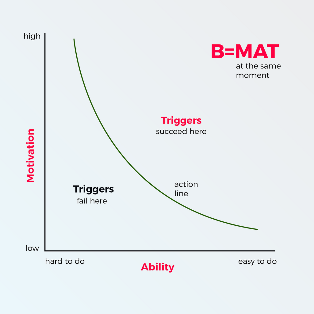 - ถ้าแรงจูงใจสูง แต่ทำยาก: Trigger จะสร้างความหงุดหงิด (อยากทำแต่ทำไม่ได้)