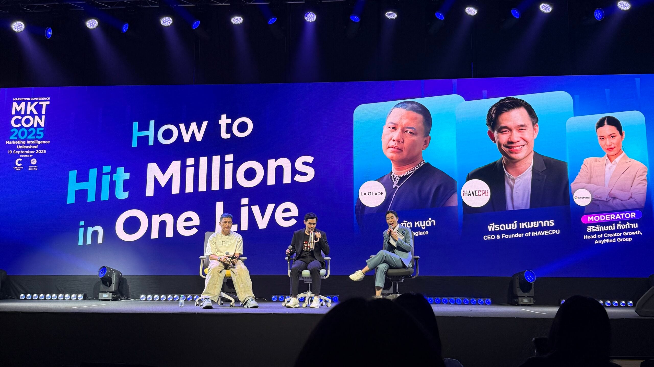 เซสชันนี้มีชื่อว่า “How to Hit Millions in One Live” โดยได้ คุณธีระฑัต หนูดำ (COO of Laglace) ตัวแทนฝั่งสินค้า FMCG/Beauty และ คุณพีรดนย์ เหมยากร (CEO & Founder of iHAVECPU) ที่คร่ำหวอดในตลาด High AOV อย่างคอมพิวเตอร์ มาแชร์มุมมองจากคนละสมรภูมิ จะมีอะไรน่าสนใจบ้าง ไปดูกันเลยค่ะ