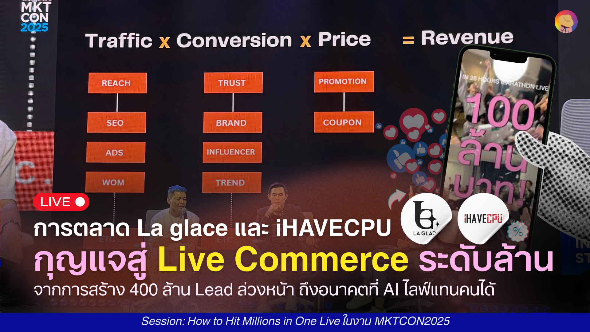 ถ้าคุณคิดว่า Live Commerce คือการเปิดกล้องแล้วขายของให้หมดไว ๆ บอกเลยว่าคิดใหม่ได้เลยค่ะ เพราะในงาน MARKETING CONFERENCE 2025 (MKTCON2025) มีหนึ่งเซสชันที่เล่าแบบเปิดหมดเปลือกว่า กว่าที่จะ “ไลฟ์แล้วขายได้เป็นล้าน” มันไม่ได้อยู่ที่การพูดเก่งหรือการยัดโปรโมชั่นแรง ๆ เท่านั้น แต่หัวใจจริง ๆ อยู่ที่การ “ซื้อใจคนดู” ก่อนที่จะซื้อขายด้วยซ้ำ