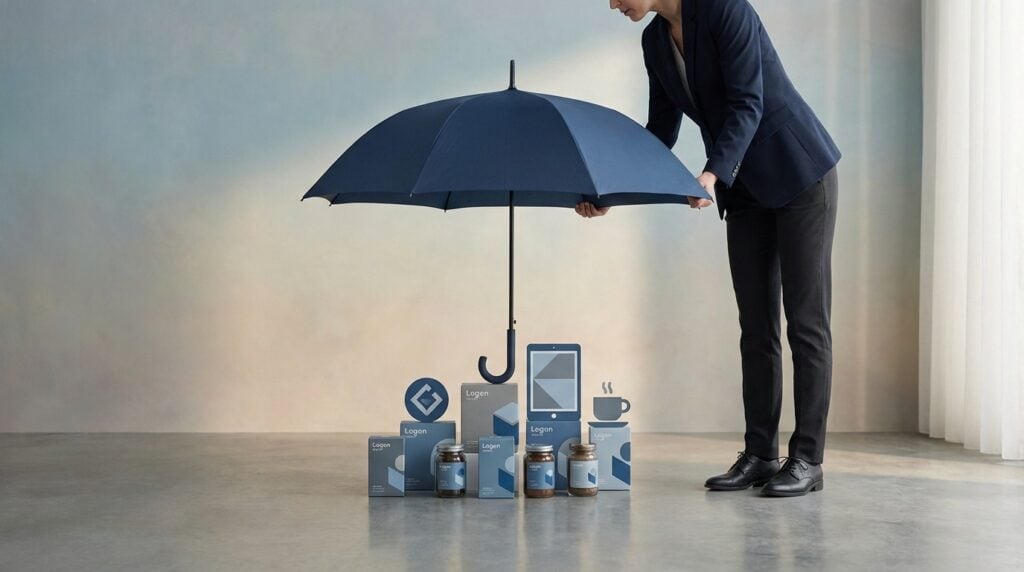 AI Generated by Shutterstock (Prompt: A modern editorial cover image about “Unified Branding strategy”. A professional brand strategist holding a large umbrella above several small product boxes and icons beneath it. The umbrella represents the master brand, everything under it shares a consistent design language (same colors, same style, same shapes). Minimal clean composition, soft gradient background, premium corporate aesthetic, high-end marketing article cover, 16:9, no text)