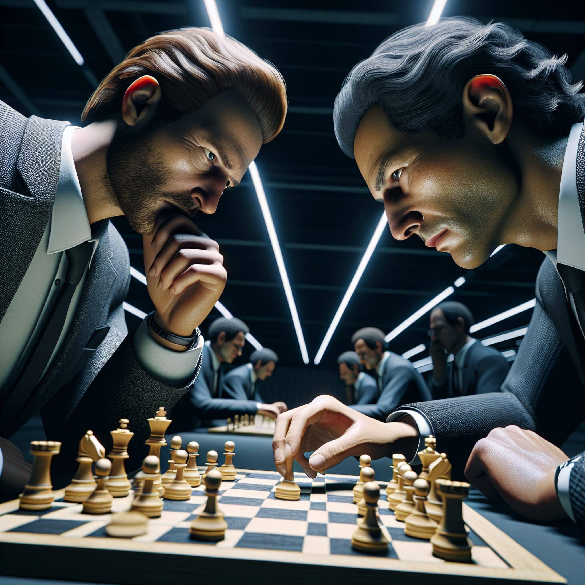 AI image generated by Shu tterstock (Prompt : Indoor photo of chess game, businessmen, 2 players, play strategically, the atmosphere is tense, the faces are realistic, no distortion)