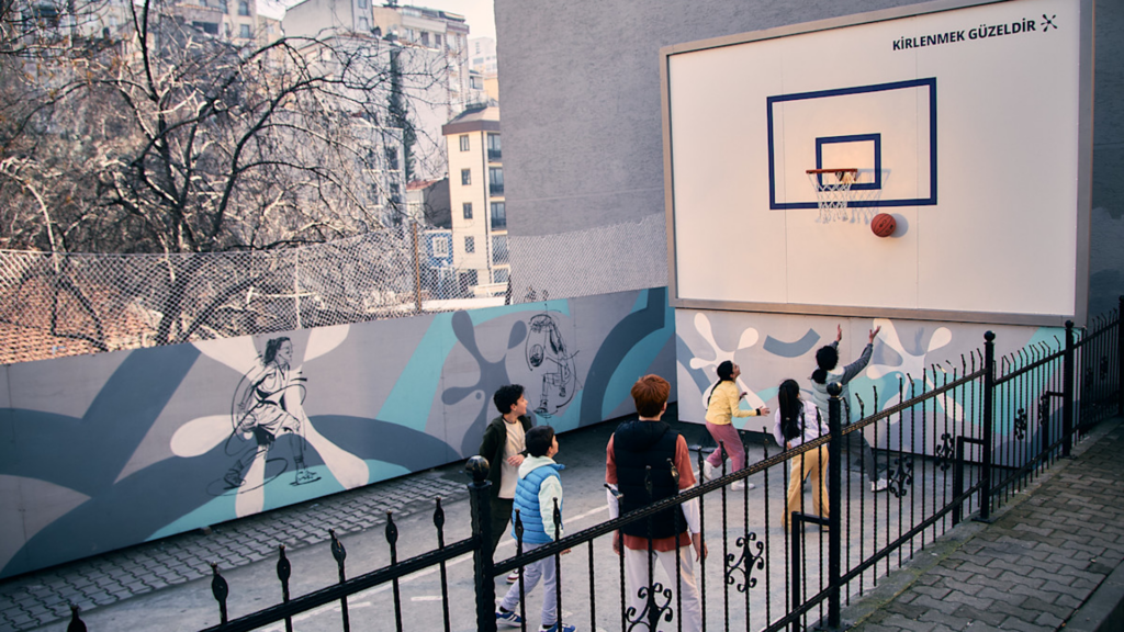 ส่วนที่ประเทศตรุกี แบรนด์ผงซักฟอกอย่าง OMO ก็ได้เปลี่ยนป้ายบิลบอร์ดโฆษณาให้กลายเป็นพื้นที่วิ่งเล่นของเด็กๆ โดยไม่เสียเงินค่าเข้า ให้สามารถเข้ามาเล่นบาส เล่นบอล หรือเล่นสไลเดอร์อย่างสนุกสนาน แน่นอนว่าเล่นไปอย่างไรก็ต้องเลอะ แล้วถ้าเลอะในพื้นที่โฆษณาของ OMO ก็ยิ่งเป็นการตอกย้ำแบรนด์ว่าควรเลือกซื้อผงซักฟอกยี่ห้ออะไรในครั้งหน้า