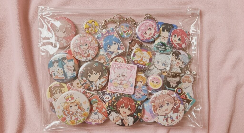 ขอบคุณภาพจาก Shutterstock AI Generator Prompt :A clear ita bag filled with anime badges, K-pop photo cards, and cute keychains, arranged in a colorful and artistic way. The bag is placed on a soft pink fabric background with pastel lighting. Focus on detail and texture of the items inside the bag. Style: realistic, kawaii fan culture, flat lay perspective.