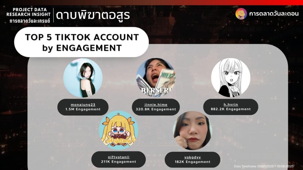 การมีส่วนร่วม (Engagement – Ignore View) เมื่อเราตัดยอดวิว YouTube ออกไปเพื่อดู การมีส่วนร่วมเชิงโต้ตอบจริง (Like, Share, Comment) จะพบภาพที่น่าสนใจมากขึ้นครับ