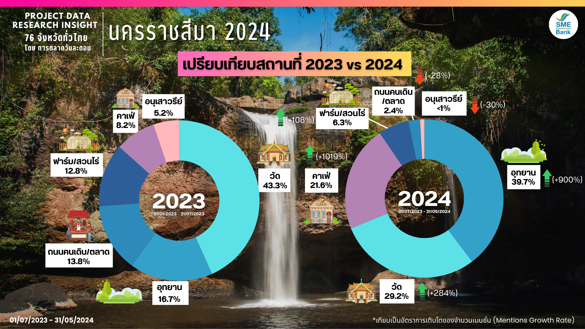 เปรียบเทียบสถานที่ท่องเที่ยว 2023 vs 2024