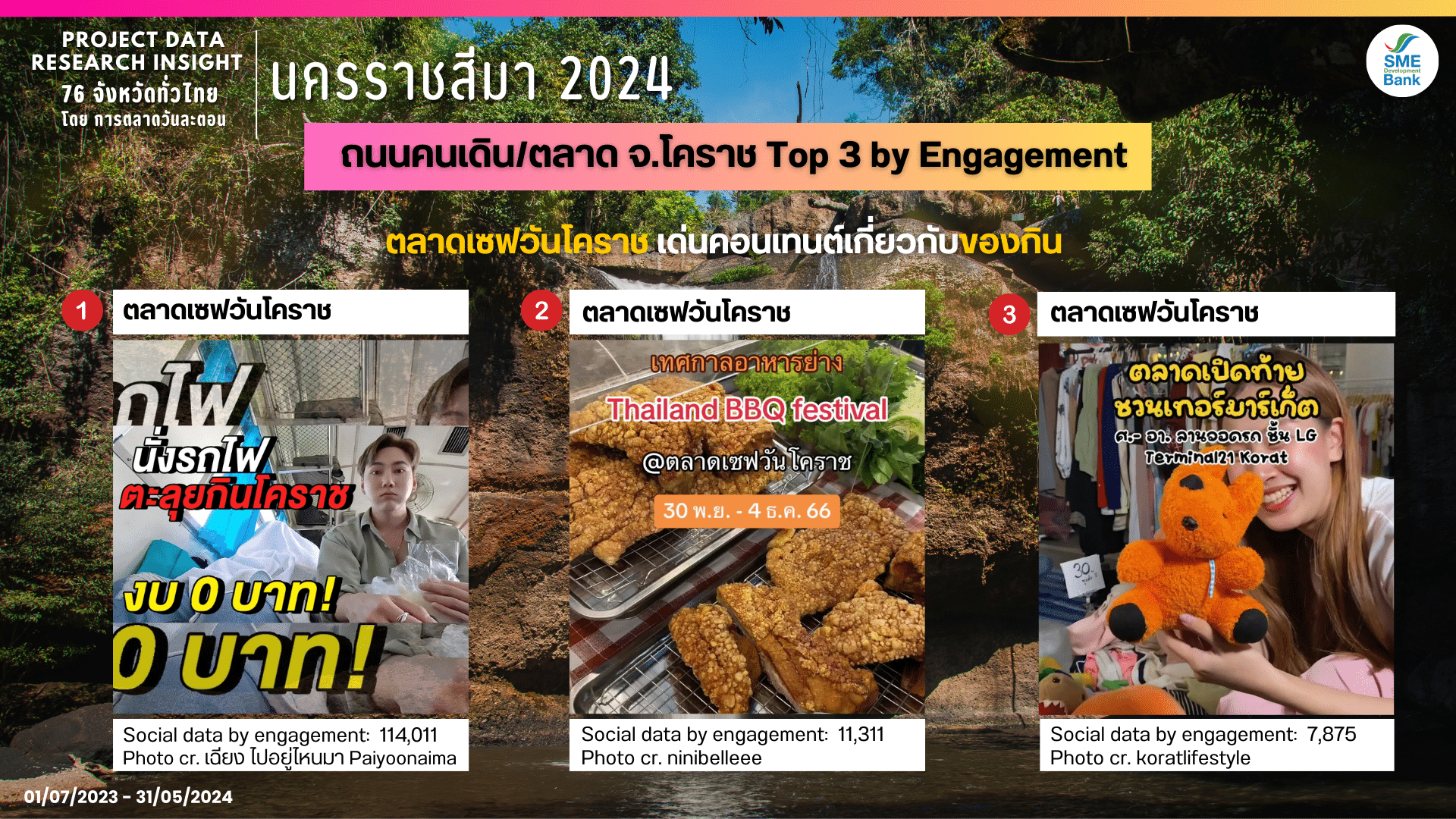 จัดอันดับ ถนนคนเดิน/ตลาด จ. โคราช Top 3 by Engagement